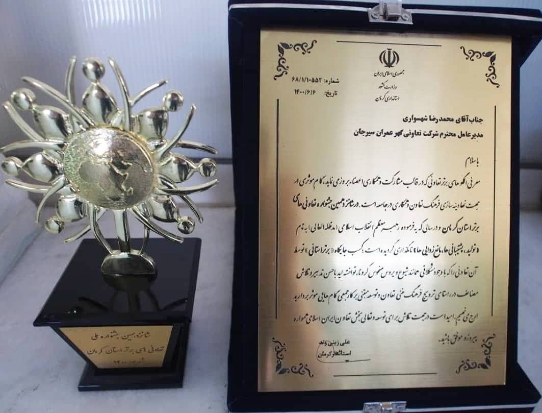 به گزارش روابط عمومی هلدینگ گهرعمران در چهارمین روز از هفته تعاون از شرکت تعاونی گهرعمران سیرجان بعنوان تعاونی برتر استان تقدیر شد