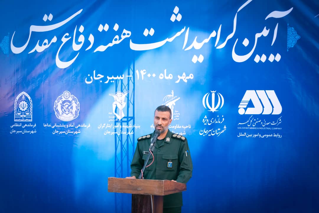 سرهنگ علی دستوری فرمانده پایگاه بسیج مقاومت سپاه سیرجان به عنوان سخنران این مراسم ضمن بررسی ابعاد مختلف هشت سال دفاع مقدس، گفت: هشت سال دفاع مقدس ما صرفاً یک امتداد زمانی و فقط یک برههی زمانی نیست گنجینهی عظیمی است که تا مدتهای طولانی ملت ما میتواند از آن استفاده کند، آن را استخراج کند و مصرف کند و سرمایهگذاری کند. تبیین فرهنگ ایثار و مقاومت برای نسل جوان و نوجوان کشور یک ضرورت است.