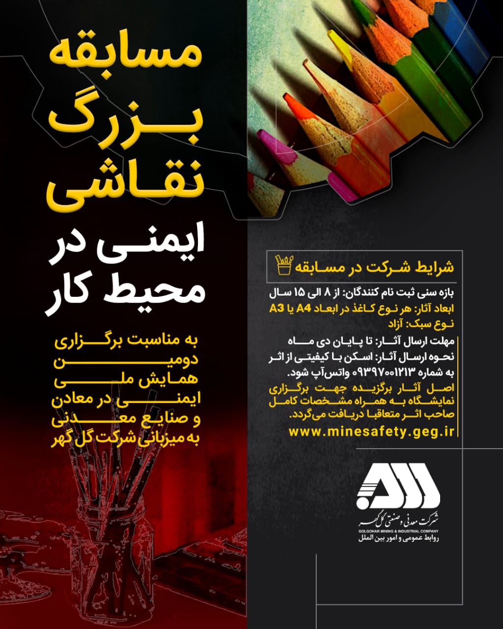مسابقه بزرگ نقاشی با موضوع "ایمنی در محیط کار" توسط شرکت معدنی و صنعتی گلگهر برگزار میشود.